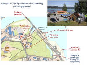 Parkering: Sjå kartet. Det er tre parkeringsalternativ, kvart med ein kort gåtur til Ulefoss gjestebrygge.